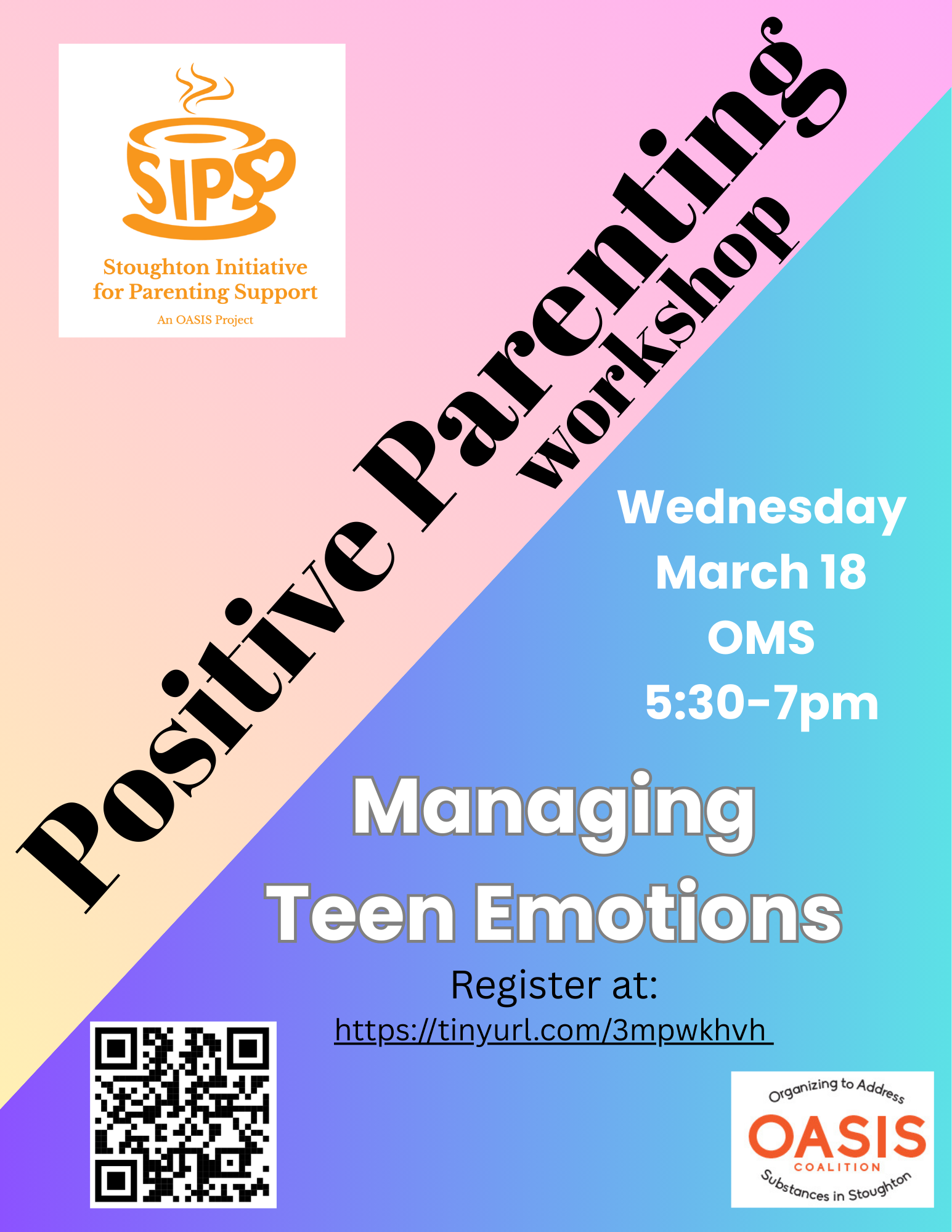 Stoughton OASIS is excited to offer Triple P parent workshops for Stoughton families. Triple P is an evidenced based program with lots of options for parent workshops and consultations depending on the need of the family. Triple P is based on positive parenting principles and providing parents and families the skills they can use to grow healthy connections and behaviors.